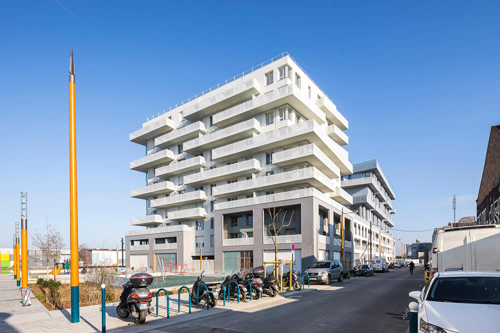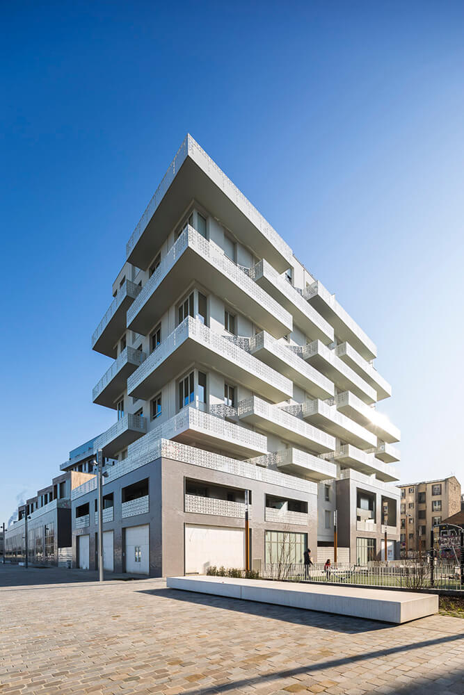 The creation of block 04, made up of 60+60 housing units, is the result of a joint workshop of two architectural firms: AZC and Cantin Planchez. This collaboration allowed us to approach the issue of housing in a free and insightful way. We were able to propose in consequence a diversity of volumetric devices, duplexes, lofts, houses, terraces, balconies, loggias, gardens…