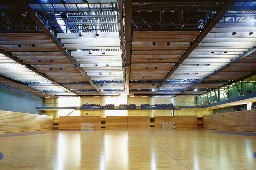 The hall has been designed according to latest world sports standards for major international sports competitions. The concept of the hall is based on flexibility of space. Space of the field is size 46×44 meters, for two handball courts. The hall contains all the supporting facilities for professional training and competition, and auditorium designed as a system of telescopic stands enables the transformation for everyday use as well as for other activities such as concerts, conferences and congresses. Selected interior materials – wood and acoustic panels, suggests that hall is a large living room for athletes. The main access to the hall and other facilities is located west of the hall from the public square and from the underground garage.