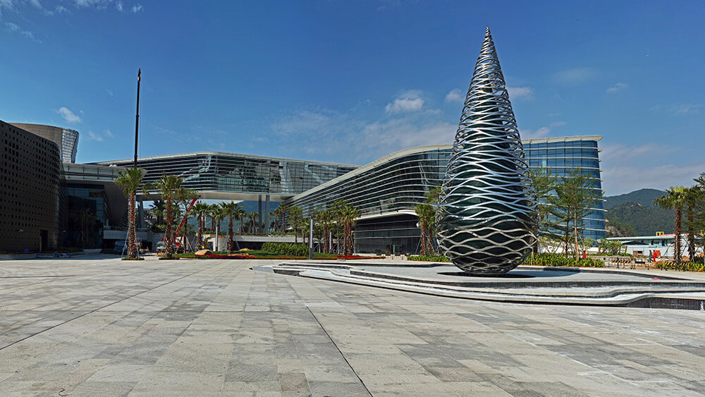 The new Zhuhai Convention and Exhibition Complex is a key element of the development of the wider Shizimen Business District in Zhuhai. It consists of a business and exhibition cluster of 550,000m² convention centre, exhibition centre, Class A office building, two 5-star hotels, business apartments and supporting facilities split into two sites.