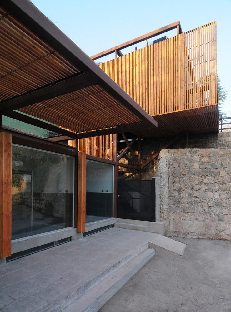 This vertical vacuum start at level 0.00m opened to the south and ends in another level opened to the east at 5.40m. Currently, there is a delay of one minute in the climbing road course between both soils. The building adds an internal service staircase, generating a trail system. Once up, you see where you come from and look to the city. The built volume, therefore, takes care of these views.